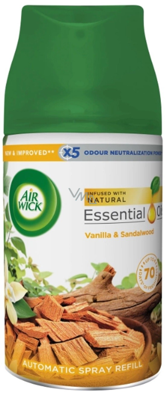 Osviežovač vzduchu Air Wick Freshmatic Vanilla & Sandalwood vytvorí vo vašom interiéri voňavé prostredie a príjemnú atmosféru. Neutralizuje pachy a je okamžitým pomocníkom v boji s nežiaducou arómou vo vašom domove.