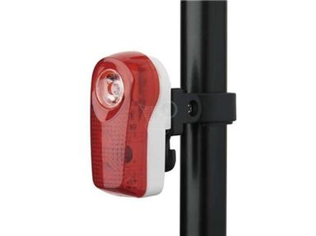 Svietidlo na bicykel, zadné, červené svetlo, zdroj svetla 5W LED + 2× LED priemer 5 mm, 2x AAA batéria, vodoodolné Je klasické zadné svietidlo na bicykel aj na batoh. Podľa okolností si zvolíte režim trvalého svietenia alebo blikania. Svietidlo je napájané dvoma mikrotužkovými batériami typu AAA a vydrží s nimi svietiť 110 hodín, čo pri svietení 3,5 hodiny denne predstavuje výdrž celý mesiac. Zdrojom svetla sú dve LED diódy s priemerom 5 milimetrov. Podstatné vlastnosti svietidla, teda odolnosť proti vode a pádu, z neho robia úplne univerzálne príslušenstvo na cesty. Držiak na sedlovú rúru a klips na batoh alebo tašku sú súčasťou balenia.Kľúčové vlastnostiČervené svetlo v režime trvalého svietenia alebo v režime blikaniaNapájanie 2x AAA batériami s výdržou 110 hodín nepretržitého svieteniaDržiak na sedlovú rúru, klips na batoh alebo taškuVodoodolné a nárazuvzdorné do 1 mParametre a špecifikácia:Výkon0,5 WZdroj svetla3× LED priemer 5 mmNapájanie2× AAA 1,5 V (mikrotužka)RežimySvieti, bliká, vypnutéR