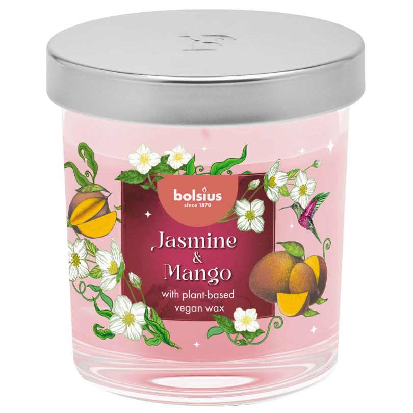 - Sviečka Bolsius Jasmine & Mango v skle s vrchnákom