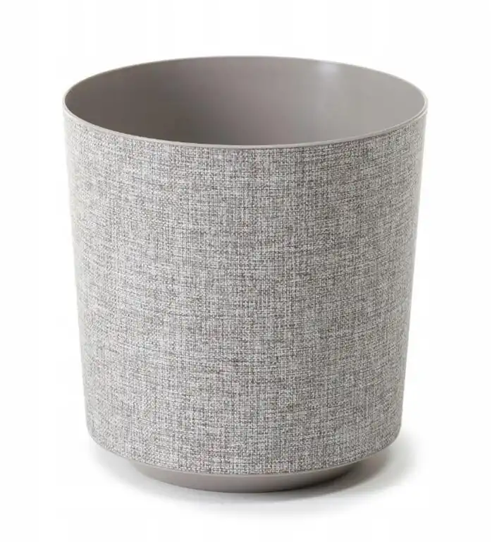 Plastový okrúhly kvetináč, obal na kvetináč, GAMA, v dizajne imitujúcim textil, čo vnesie do interiéru teplo, mäkkosť a eleganciu.
