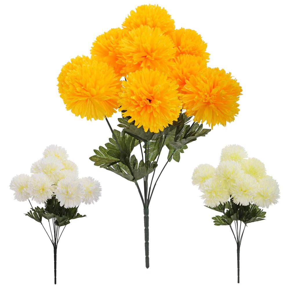 Kytica chryzantém obsahuje deväť kvetov v rôznych farbách, vrátane žltej a bielej. Je ideálna na dekoráciu interiéru alebo exteriéru. Výška kytice je 50 cm, čo ju robí výrazným doplnkom. Umelé kvety sú odolné a nevyžadujú údržbu, takže si ich môžete užívať po celý rok.