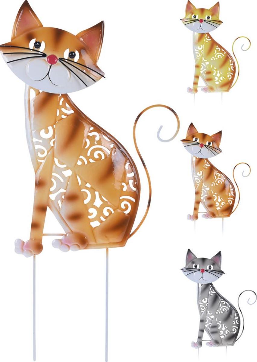 zapichovacia dekorácia, mačka v pohyblivou hlavou, kov, rozmery 26x2x47,5 cm, mix 3 farieb