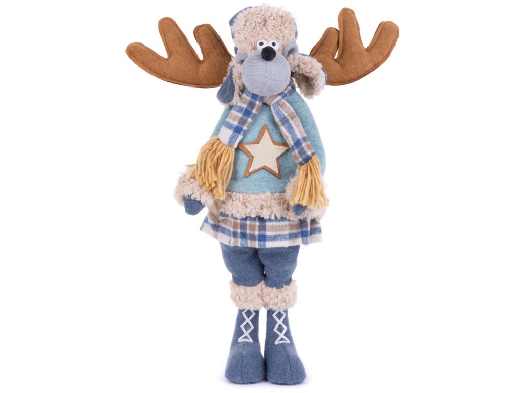 Postavička MagicHome Vianoce, Sob dievčatko v modrom svetri, látkový, 24x18x55 cm