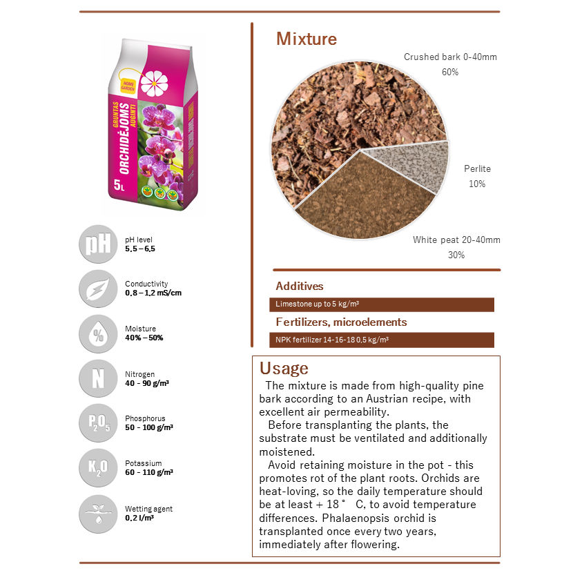 - Použitie: Pred presádzaním rastlín je potrebné substrát prevzdušniť a dodatočne navlhčiť.