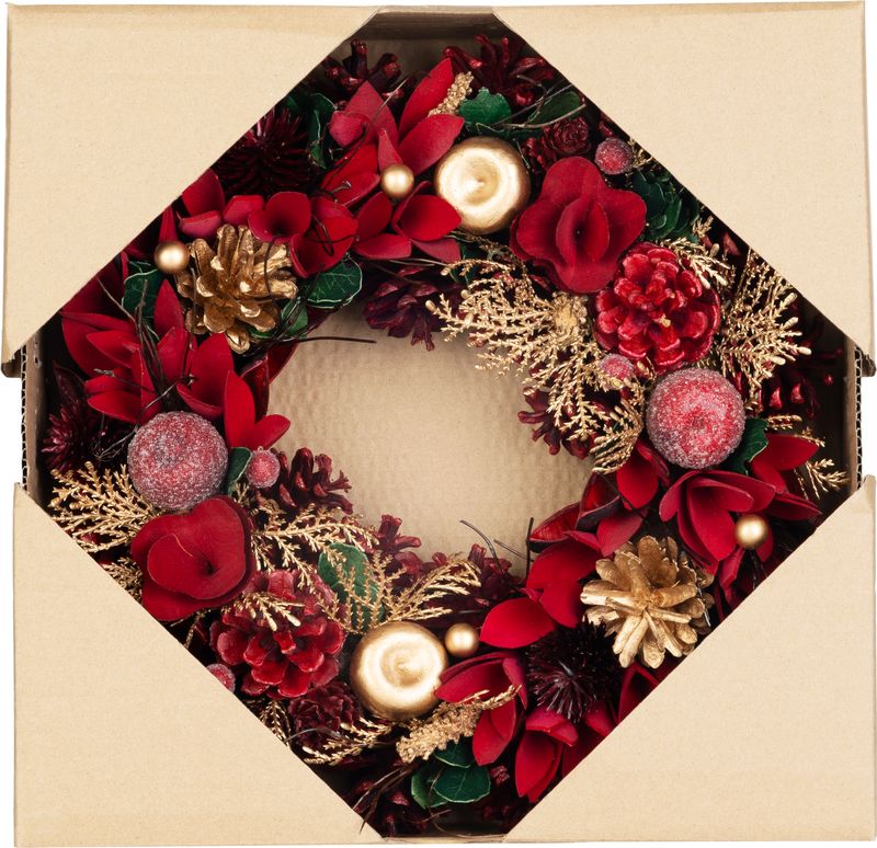 Veniec MagicHome Vianoce, závesný, červeno-zlatý, 30 cm