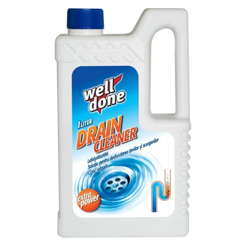 Well Done Drain Cleaner špeciálny čistiaci prostriedok na čistenie sifónov a odpadového potrubia. Aktívne odstraňuje baktérie v roztoku, má vysokú efektívnosť a oslobodí Vás od nepríjemného zápachu a od upchatých odtokov. Výrobok je určený na použitie v sifónoch umývadiel, spŕch a vaní. Pri použití raz týždenne pomáha predchádzať upchatiu odpadu.