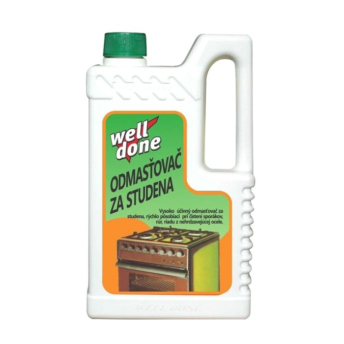 Vysoko účinný odmasťovač za studena WELL DONE rýchlo pôsobí pri čistení sporákov, rúr a riadu z nehrdzavejúcej ocele od odolných pripálenín či mastnoty.