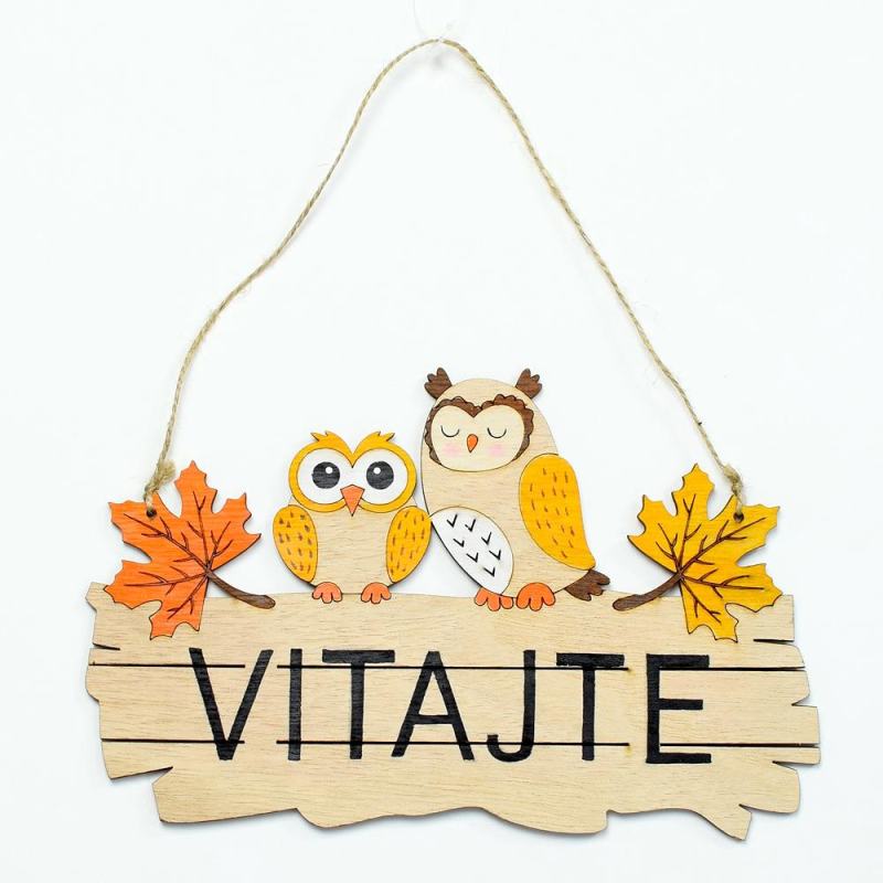 ZÁVES DREVO-SOVA VITAJTE 22X14X0,5cm