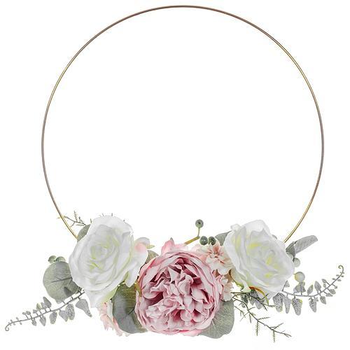 Závesná dekorácia/veniec MagicHome s kvetmi, priemer 30cm.