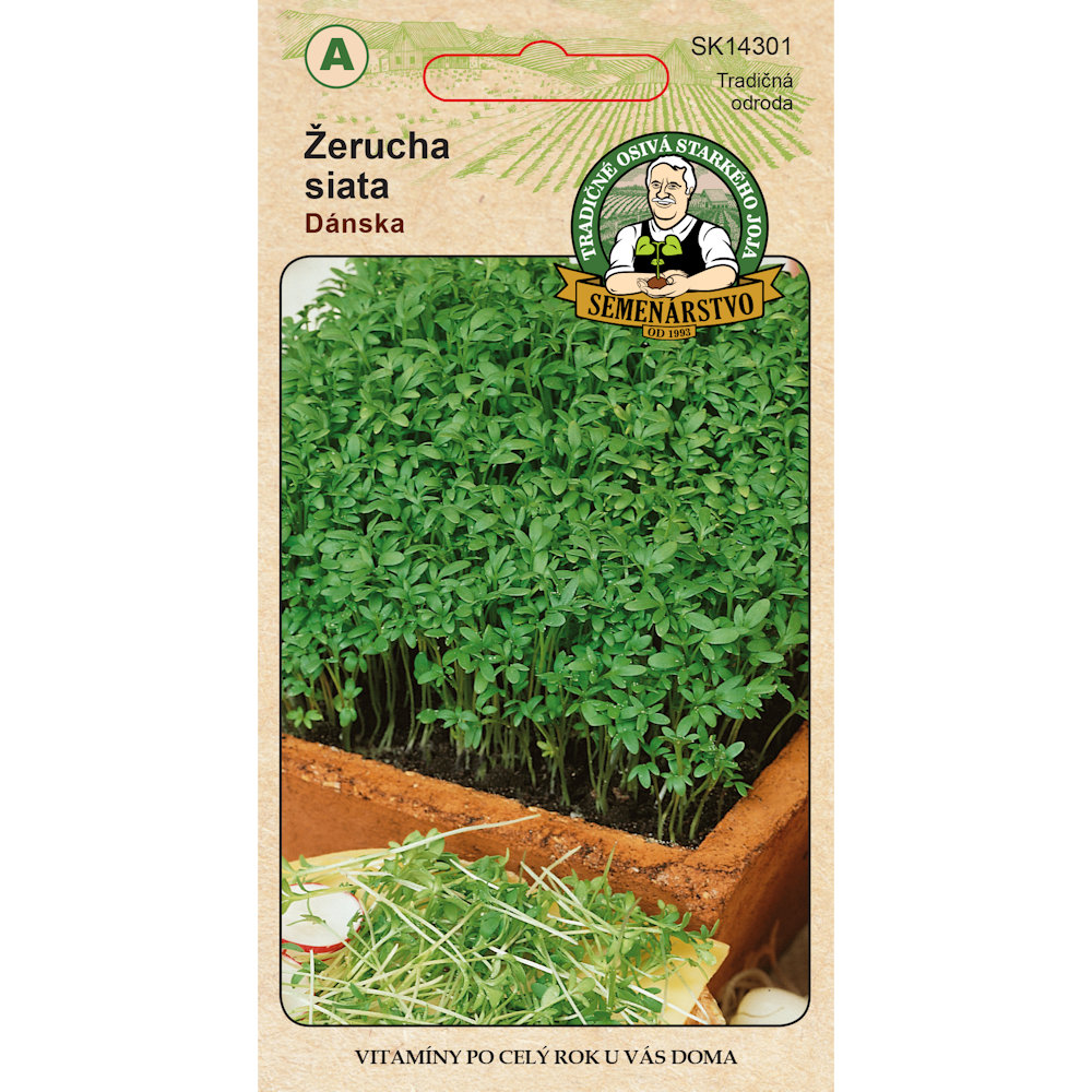Listová lahôdková zelenina vhodná na rýchlenie a celororočné pestovanie (hustý výsev do kvetináčov, do misiek, na buničinovú vatu), ale aj do voľnej pôdy. Seje sa na povrch substrátu a nezasypáva sa. Pri udržiavaní primeranej vlhkosti sa dosiahne konzumná zrelosť rastliny už za 7 - 14 dní po výseve. Zber sa robí odrezávaním celých rastlín vysokých 4 - 6 cm, tesne nad povrchom substrátu. Používa sa na dochucovanie pokrmov a slúži ako cenný zdroj vitamínov. Dánska je tradičná odroda s pikantnou chuťou a krátkym a rýchlym vývojom.